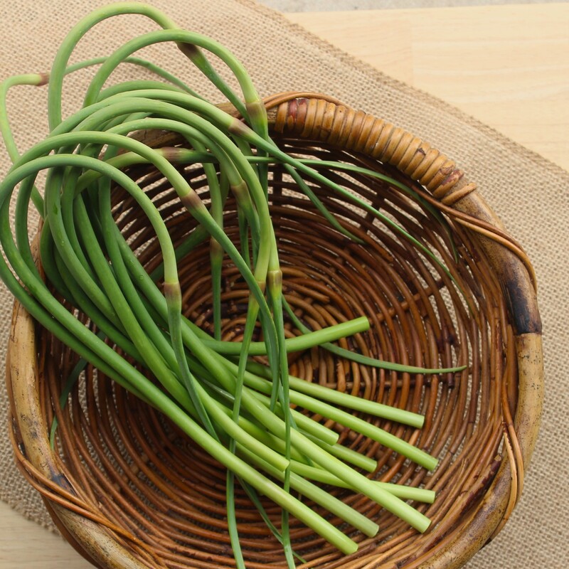 You can now purchase freshly harvested, uncured garlic bulbs from our farmer's markets, as well as delicious garlic scapes.